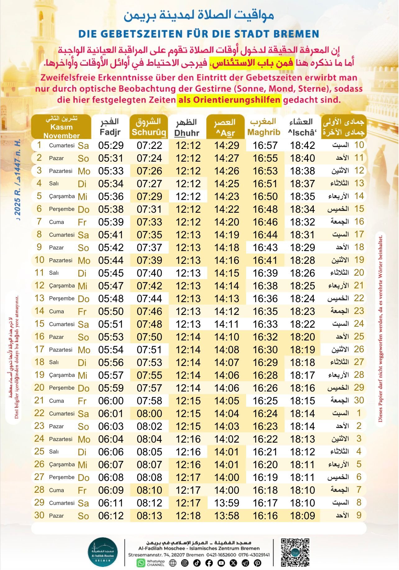 GEBETSZEITEN FÜR BREMEN – www.islaminbremen.de