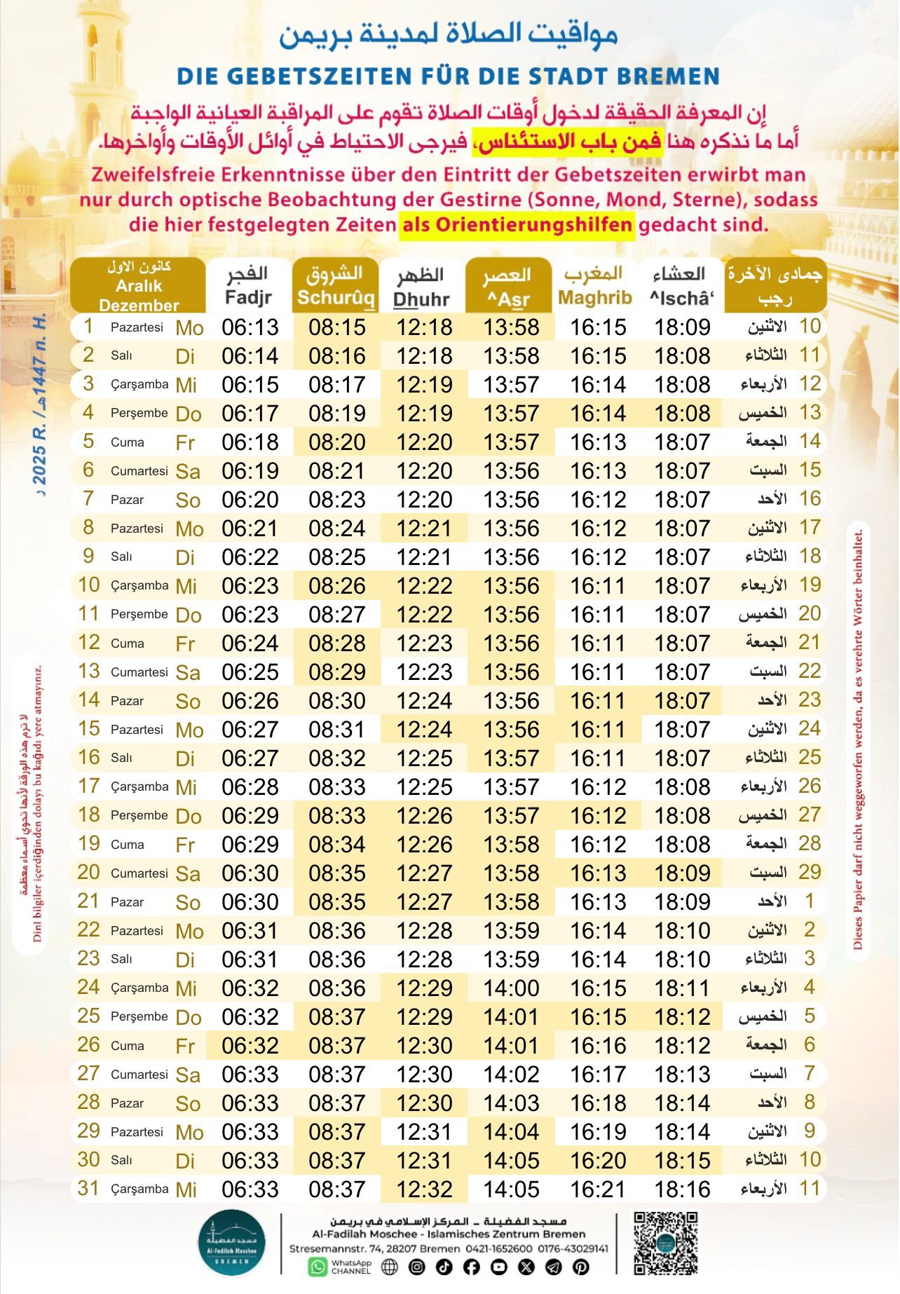 GEBETSZEITEN FÜR BREMEN – www.islaminbremen.de